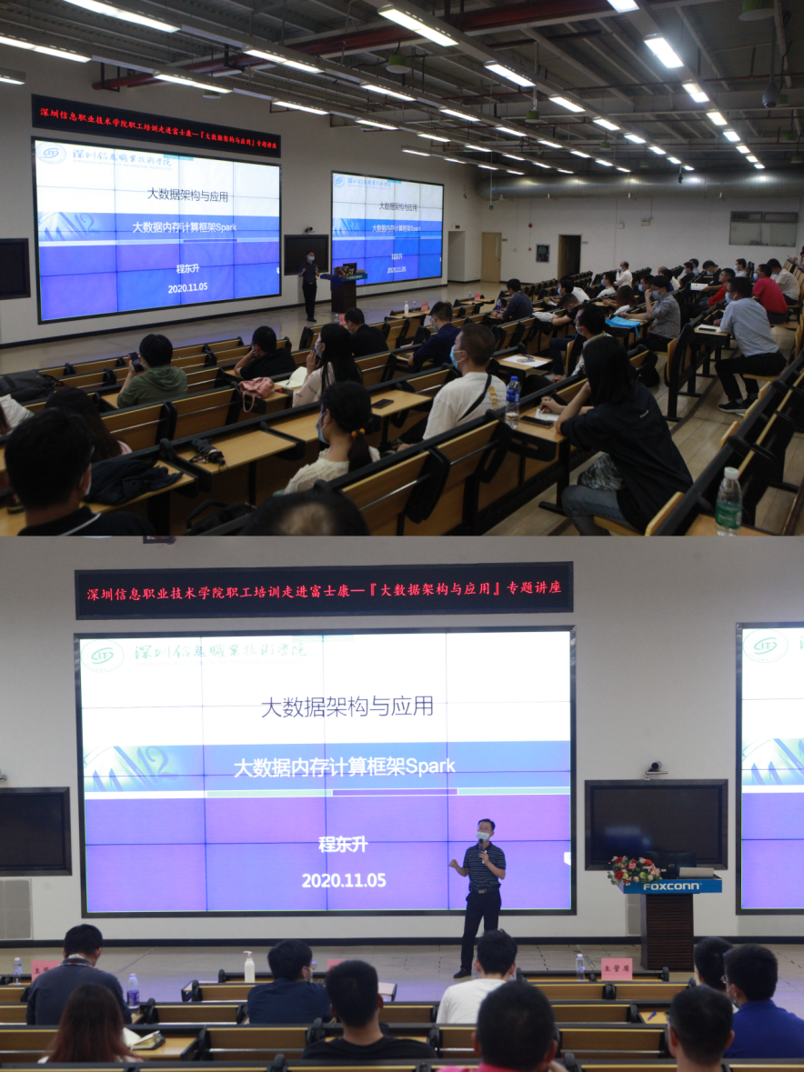 11月5日晚,继续教育学院开展的“社会培训进企业”系列活动持续推进,在富士康科技集团(深 圳)如期推出了第三场专业技术类专题讲座“大数据架构和应用”,主讲老师为我校软件学院程东升