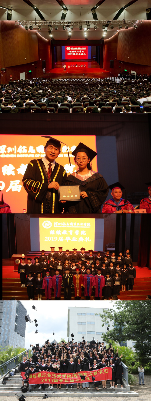 毕业典礼在国歌声中拉开帷幕。继续教育学院院长陈正学宣读了《关于继续教育学院2019届优秀毕业生、优秀教师和管理人员的决定》;姚学清副校长为优秀教师代表颁发荣誉证书;2019届优秀毕业生代表、平湖德林教学点17工商管理班廖玉环同学发表了毕业感言;龙华区观澜东方教学点陈小花老师代表教师发言。