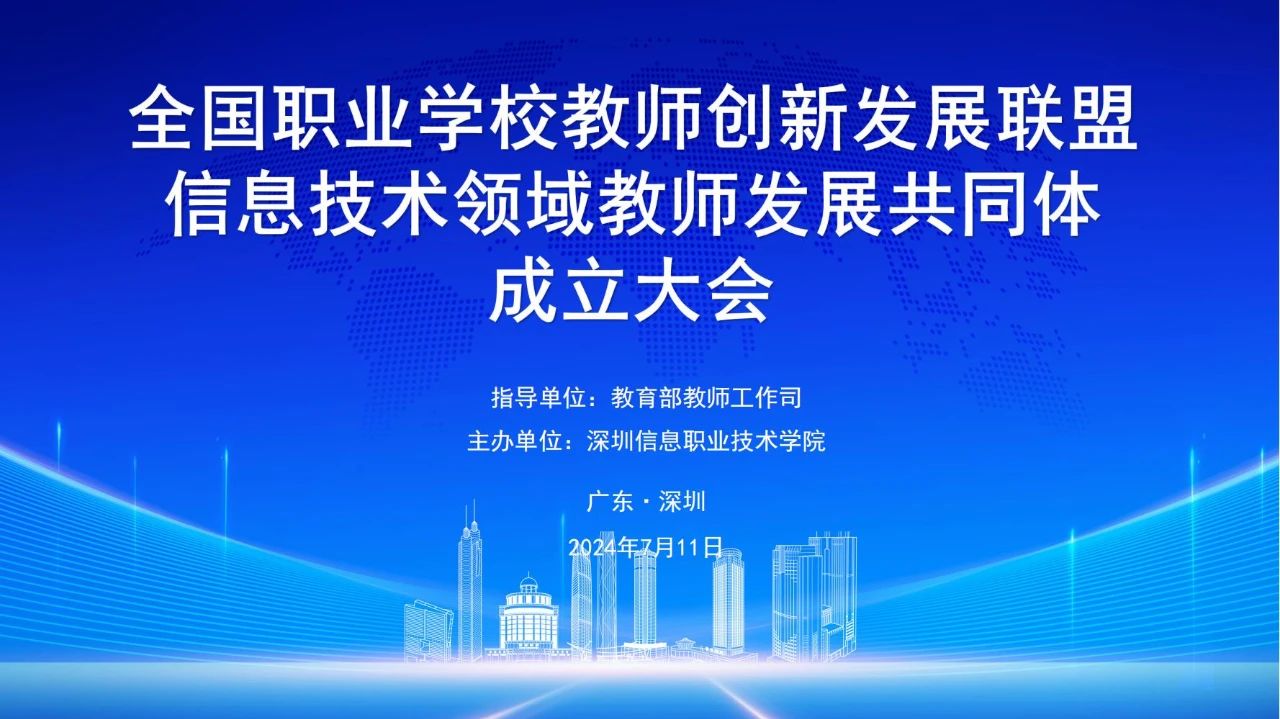 7月11日,全国职业学校教师创新发展联盟信息技术领域教师发展共同体(以下简称“共同体”)成立大会以线上线下相结合的方式在深信院召开,155家企业、本科高校和职业院校,近300名代表线上参会。会议由共同体秘书长、深圳信息职业技术学院继续教育学院院长陈正学主持。会议汇报了共同体组建情况、2024年工作计划和培训项目,宣读了《关于确定共同体理事会成员名单的报告》。
